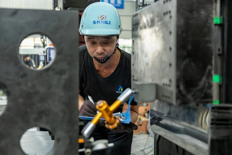 3. Visa mašina patikrinkite statmenumą tarp Z ašies kreipiamojo bėgio ir darbo stalo, užtikrindami 0,01 mm tikslumą.
